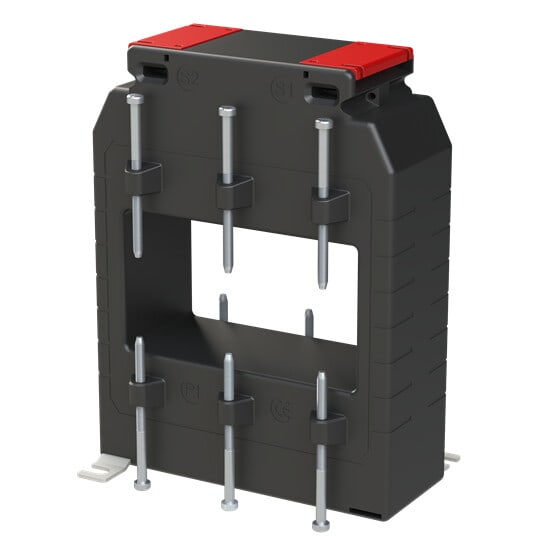 Virtamuuntaja 2500/5 A, lk 0.5, aukko 101x56 mm kaapelille/kiskolle Sähkönmittaukseen tarkoitettu IEC 61869-2 standardin mukainen virtamuuntaja. Kiinnitysjalat ja virtakiskokiinnitystarvikkeet sisältyvät toimitukseen. DIN-kisko kiinnitystarvike CT1M-4/5/6/7 DIN tilattava erikseen.
