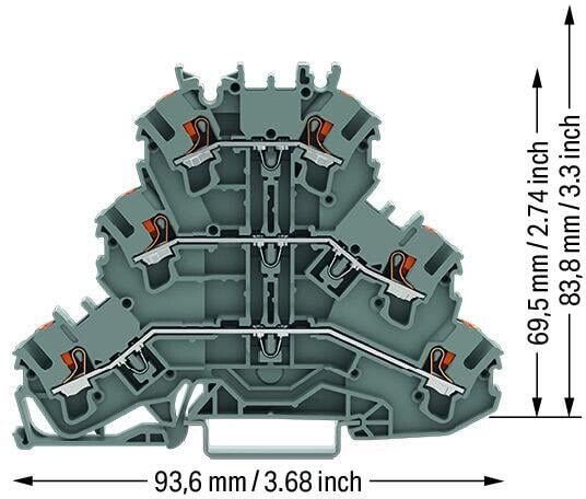 WAGO - Riviliitin kaksikerros TOPJOB S - L/L/L, 0,25-2,5(4),painonappi