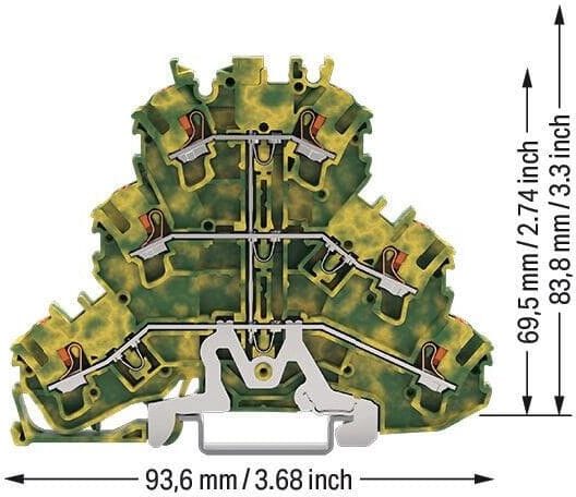 WAGO - Riviliitin kaksikerros TOPJOB S - PE, 0,25-2,5(4),painonappi