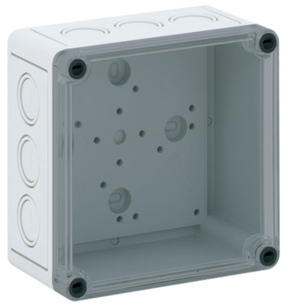 Tyhjä kotelo IP66, kotelo: polystyreeni, harmaa, vastaava kuin RAL 7035, kansi: polykarbonaattia, läpinäkyvä