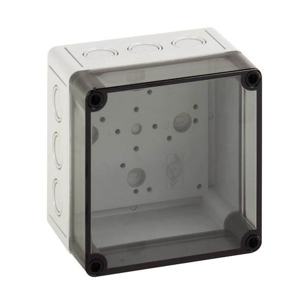 Tyhjä kotelo IP66, kotelo: polystyreeni, harmaa, vastaava kuin RAL 7035, kansi: polykarbonaattia, läpinäkyvä
