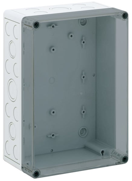 Tyhjä kotelo IP66, kotelo: polystyreeni, harmaa, vastaava kuin RAL 7035, kansi: polykarbonaattia, läpinäkyvä