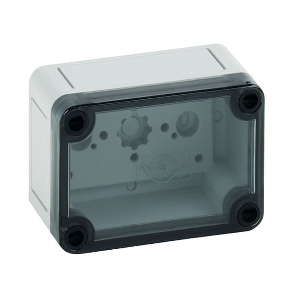 Tyhjä kotelo IP66, kotelo: polystyreeni, harmaa, vastaava kuin RAL 7035, kansi: polykarbonaattia, läpinäkyvä
