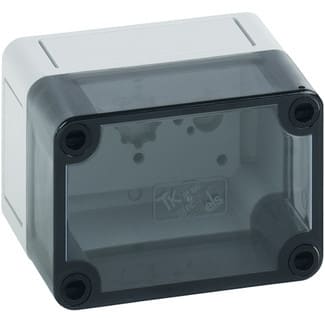 Tyhjä kotelo IP66, kotelo: polystyreeni, harmaa, vastaava kuin RAL 7035, kansi: polykarbonaattia, läpinäkyvä