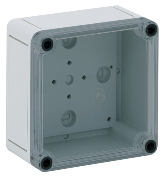 Tyhjä kotelo IP66, kotelo: polystyreeni, harmaa, vastaava kuin RAL 7035, kansi: polykarbonaattia, läpinäkyvä