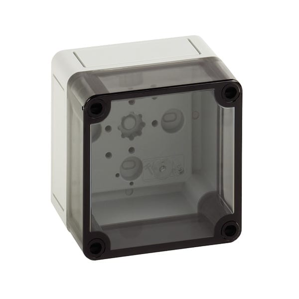 Tyhjä kotelo IP66, kotelo: polystyreeni, harmaa, vastaava kuin RAL 7035, kansi: polykarbonaattia, läpinäkyvä