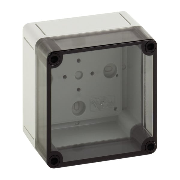 Tyhjä kotelo IP66, kotelo: polystyreeni, harmaa, vastaava kuin RAL 7035, kansi: polykarbonaattia, läpinäkyvä