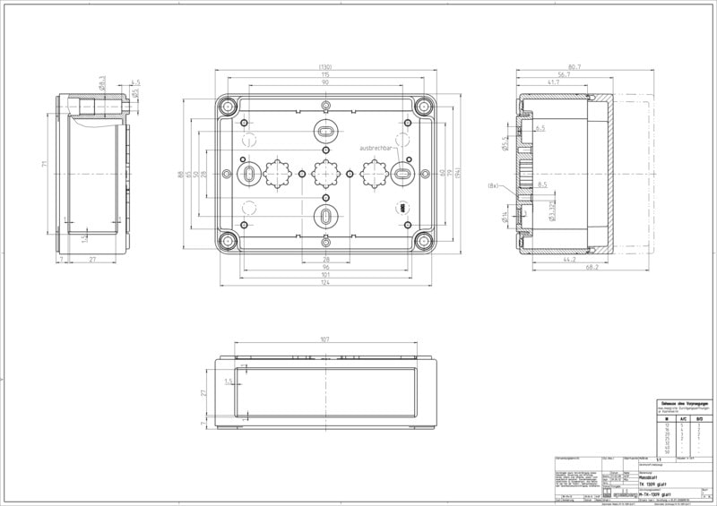 TK PS 1309-6-to Asennuskotelo transparenttikannella ilman läpivientiaihioita, IP66, harmaa, 130x94x57mm TK PS Kotelosarja