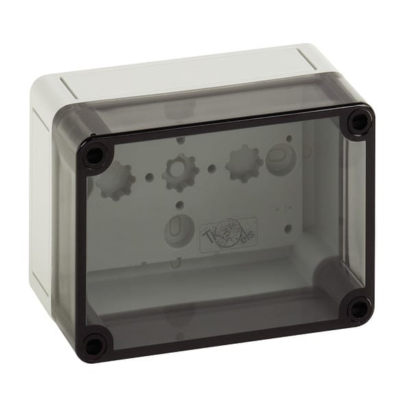 Tyhjä kotelo IP66, kotelo: polystyreeni, harmaa, vastaava kuin RAL 7035, kansi: polykarbonaattia, läpinäkyvä