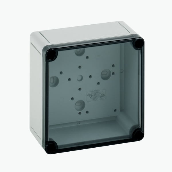 Tyhjä kotelo IP66, kotelo: polystyreeni, harmaa, vastaava kuin RAL 7035, kansi: polykarbonaattia, läpinäkyvä
