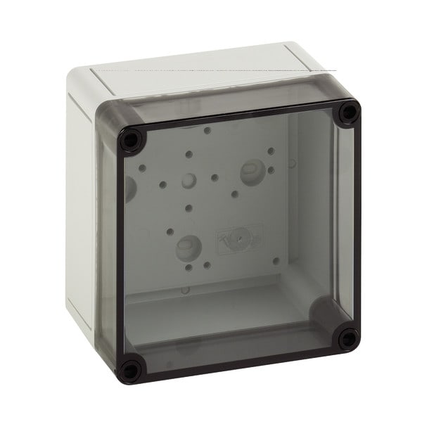 Tyhjä kotelo IP66, kotelo: polystyreeni, harmaa, vastaava kuin RAL 7035, kansi: polykarbonaattia, läpinäkyvä
