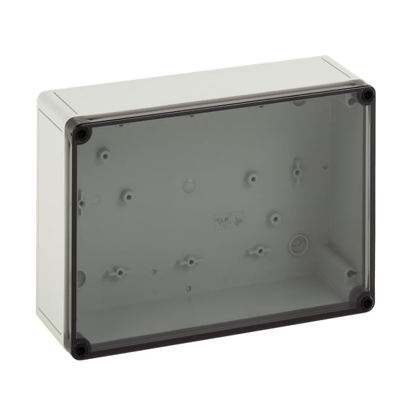 Tyhjä kotelo IP66, kotelo: polystyreeni, harmaa, vastaava kuin RAL 7035, kansi: polykarbonaattia, läpinäkyvä