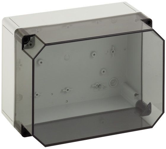 Tyhjä kotelo IP66, kotelo: polystyreeni, harmaa, vastaava kuin RAL 7035, kansi: polykarbonaattia, läpinäkyvä