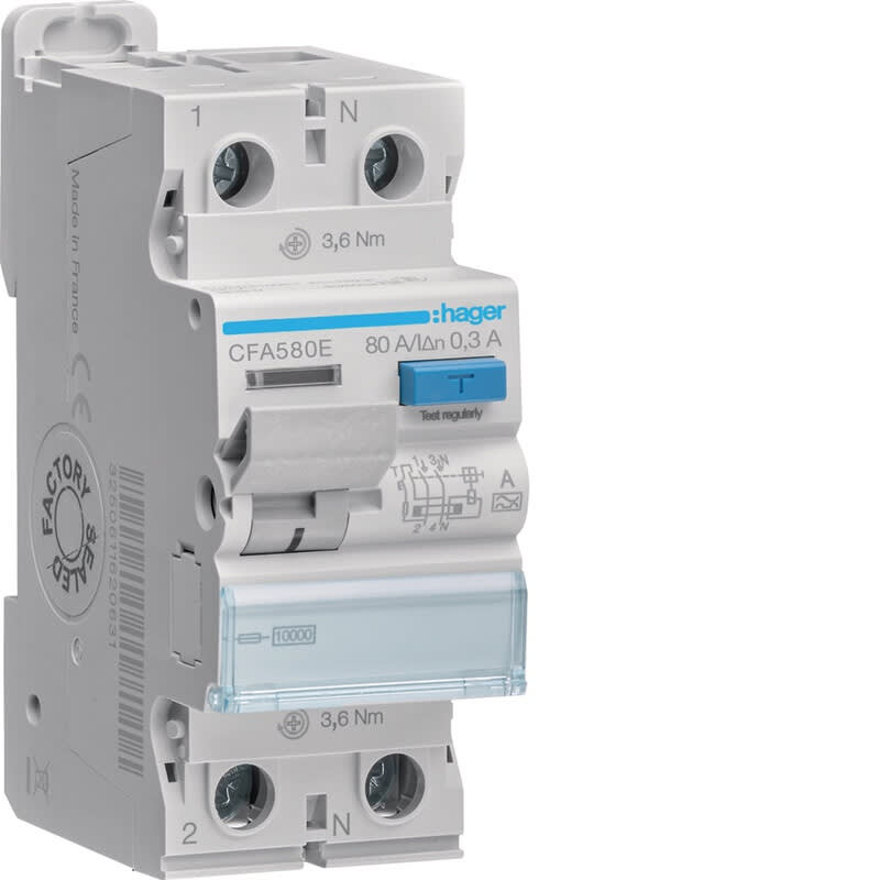 HAGER - Vikavirtasuojakytkin - CFA580E 300mA A/2x80A 10kA