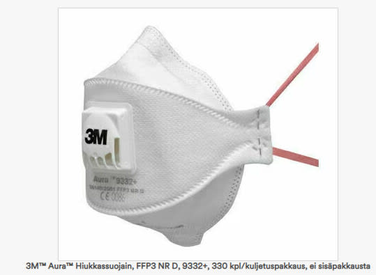 3M™ Aura™ -hiukkassuojain, FFP3, venttiilillinen, 9332+.Hengitysvastusta alentava suodatinteknologia tekee hengittämisestähelpompaa. Venttiili ehkäisee lämmön kertymistä hengityssuojaimensisälle kuumissa ja kosteissa olosuhteissa.
