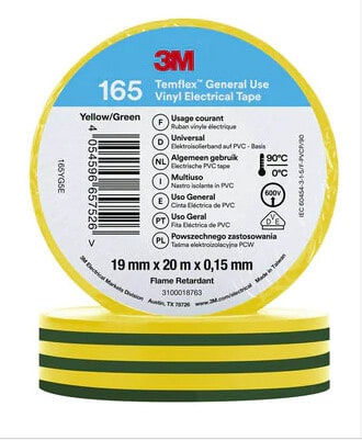 3M Temflex vinyylisähköteippi 165, Kelta/Vihreä, 19 mm x 20 m.