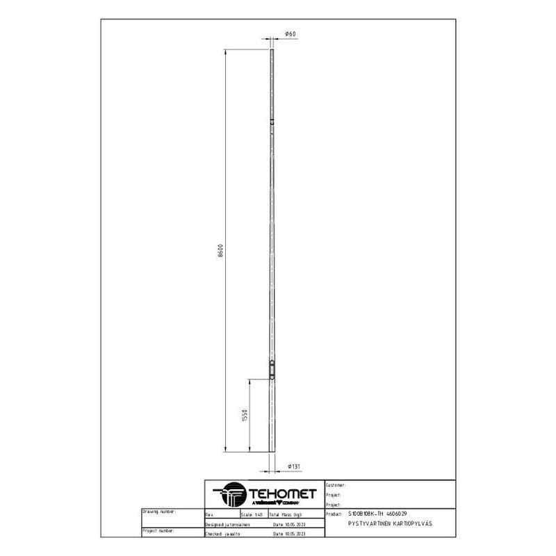 TEHOMET - Kartiopylväs s-varsi - S100B108K/TH PYSTYVARTINEN KARTIOPYLVÄS
