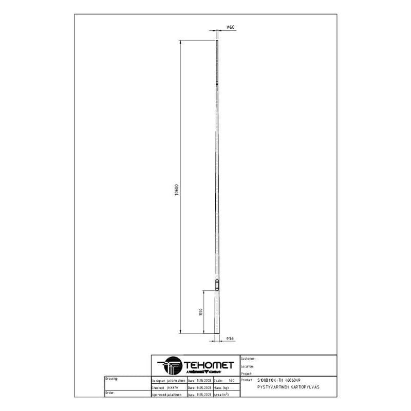 TEHOMET - Kartiopylväs s-varsi - S100B110K/TH PYSTYVARTINEN KARTIOPYLVÄS