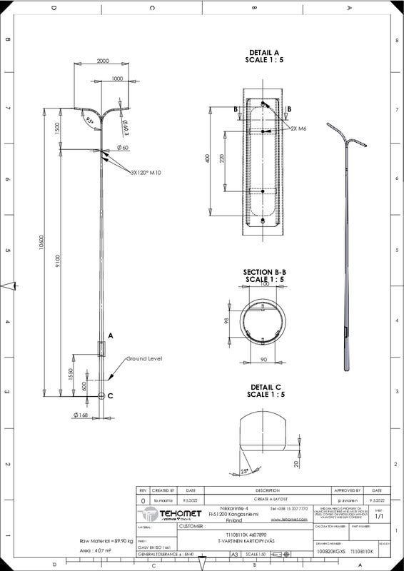 TEHOMET - Teräskartiopylväs - T110B110 teräskartiopylväs
