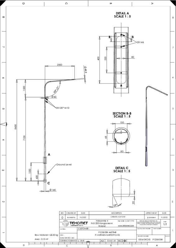 TEHOMET - Teräskartiopylväs - P125B108 teräskartiopylväs
