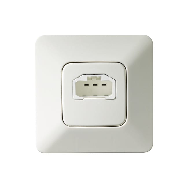 kaksinapainen (P+N) suojamaadoituksella varustettu kaluste asennettavaksi kojerasiaan. Valaisinpistorasian nimellisjännite on 250 V ~ / 6 A. Jousiliittimet mahdollistavat 1,5-2,5 mm² ryhmäjohdon jatkamisen. Tuote saatavana sekä Jussi- että Impressivo-kalustesarjaan.