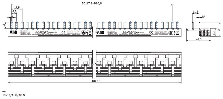 ABB - DS301C Virtakisko - 4-napainen 58 moduulia