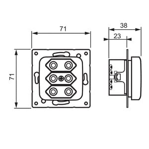3-osainen Euro pistorasia keskiölevyllä. Pistorasiassa on liittimet 0- ja N-johtimille ja niihin voi kytkeä max 4 johtoa (haaroitusmahdollisuus). Lisäksi rungossa on 2-lisäliitintä joihin voi kytkeä kumpaankin 2 johtoa. Liittimet on hyväksytty ML ja MK johtimille. Pistorasian runko on kosketussuojainen ilman peitelevyä.