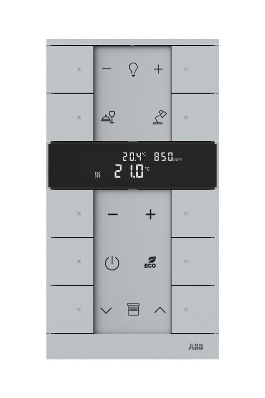 ABB-free@home Tenton 10-osainen painiketaulu huonetermostaatilla, CO2, rh% ja VOC-anturilla.