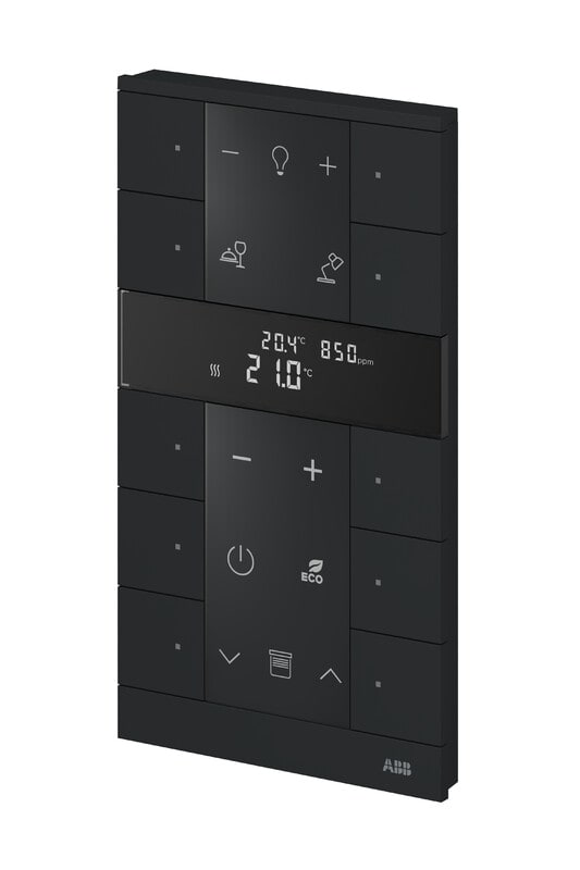 ABB-free@home Tenton 10-osainen painiketaulu huonetermostaatilla, CO2, rh% ja VOC-anturi.