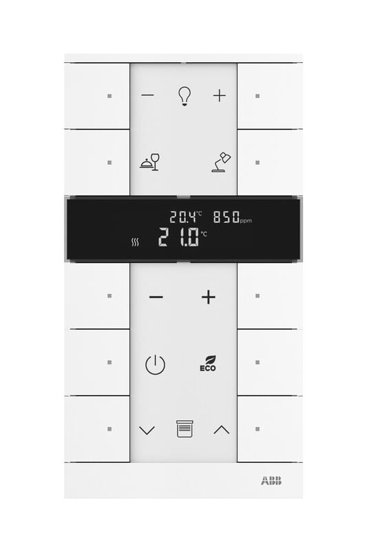 ABB-free@home Tenton 10-osainen painiketaulu huonetermostaatilla, CO2, rh% ja VOC-anturi.