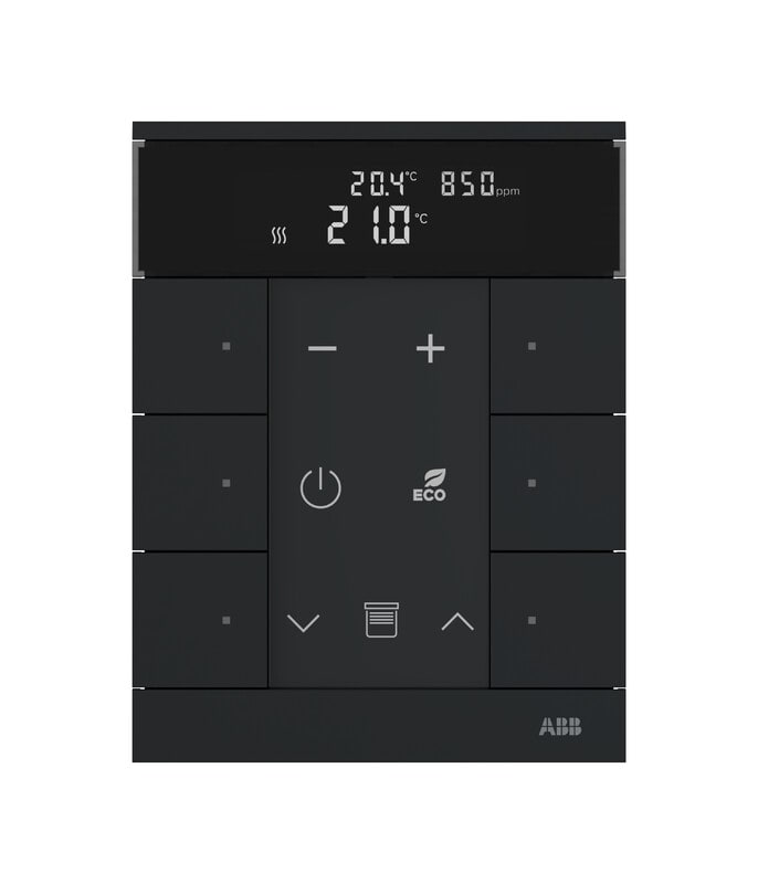 ABB-free@home Tenton 6-osainen painiketaulu huonetermostaatilla, CO2, rh% ja VOC-anturi.