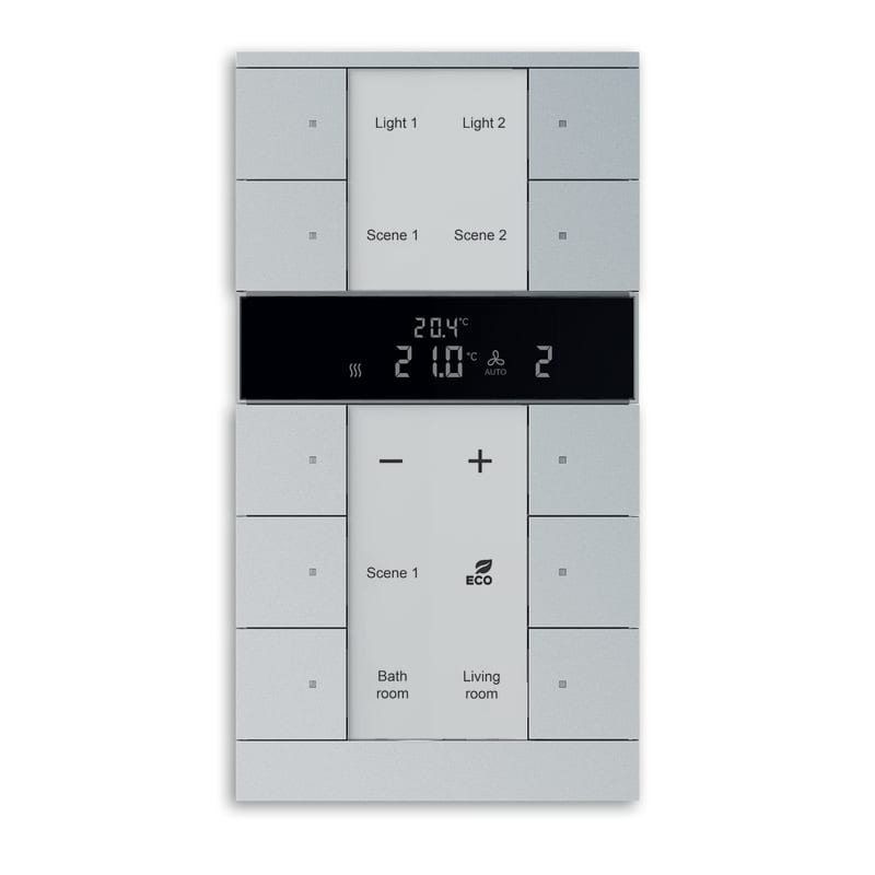 10-osainen painiketaulu termostaattitoiminnolla. Säätötavat ovat 2-piste ja PI-säätö (jatkuva ja epäjatkuva PI PWM-säätö). Laite on käyttäjäystävällinen ja mahdollistaa saumattoman käytön sekä paikallisesti että kosketusnäytöiltä 8136/09, 8136/12, 6136/07 tai visualisointiserveriltä 6136/APP-500 isäntä/orja-toiminnon kautta.
