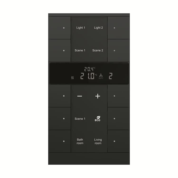 10-osainen painiketaulu orja-termostaattitoiminnolla, toimien isäntä-termostaatin paikalliskäyttöyksikkönä. Varsinainen termostaattitoiminto on toisessa laitteessa kuten: VCC/S, FCC/S tai premium läsänäolotunnistimessa.