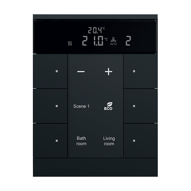 6-osainen painiketaulu termostaattitoiminnolla. Säätötavat ovat 2-piste ja PI-säätö (jatkuva ja epäjatkuva PI PWM-säätö). Laite on käyttäjäystävällinen ja mahdollistaa saumattoman käytön sekä paikallisesti että kosketusnäytöiltä 8136/09, 8136/12, 6136/07 tai visualisointiserveriltä 6136/APP-500 isäntä/orja-toiminnon kautta.