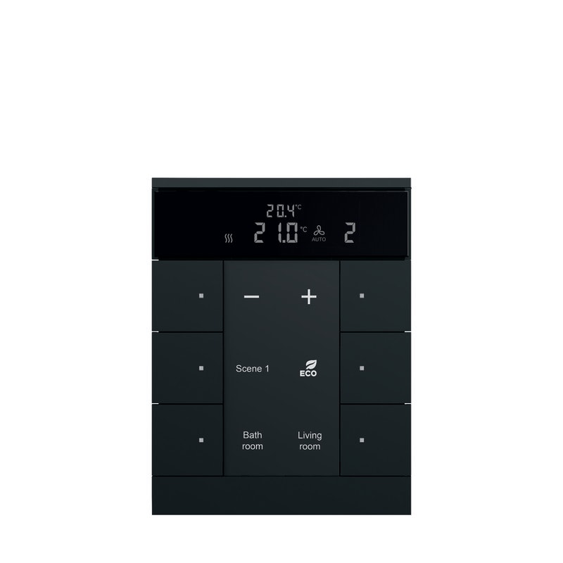 6-osainen painiketaulu orja-termostaattitoiminnolla, toimien isäntä-termostaatin paikalliskäyttöyksikkönä. Varsinainen termostaattitoiminto on toisessa laitteessa kuten: VCC/S, FCC/S tai premium läsänäolotunnistimessa.