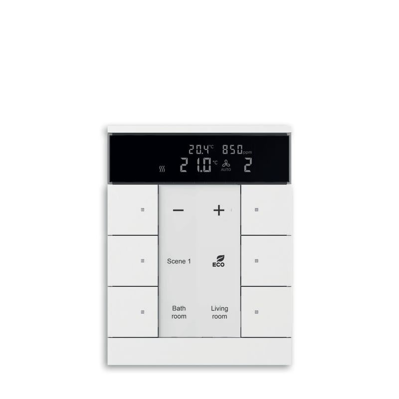 6-osainen painiketaulu termostaattitoiminnolla ja CO2- sekä ilmankosteusanturiella. Säätötavat ovat 2-piste ja PI-säätö (jatkuva ja epäjatkuva PI PWM-säätö). Laite on käyttäjäystävällinen ja mahdollistaa saumattoman käytön sekä paikallisesti että kosketusnäytöiltä 8136/09, 8136/12, 6136/07 tai visualisointiserveriltä 6136/APP-500 isäntä/orja-toiminnon kautta.