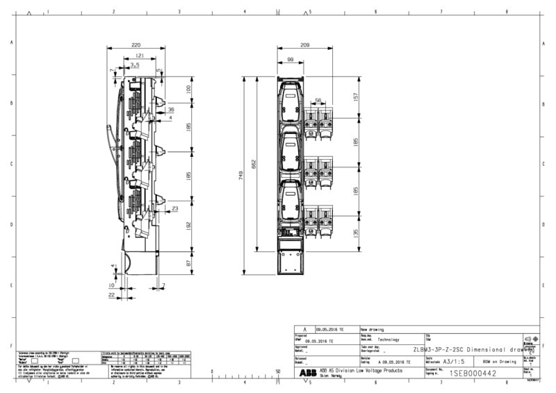 ABB - Jonovarokekytkin 630A sivul 2 V-liitin/v - ZLBM3-3P-Z-2SC