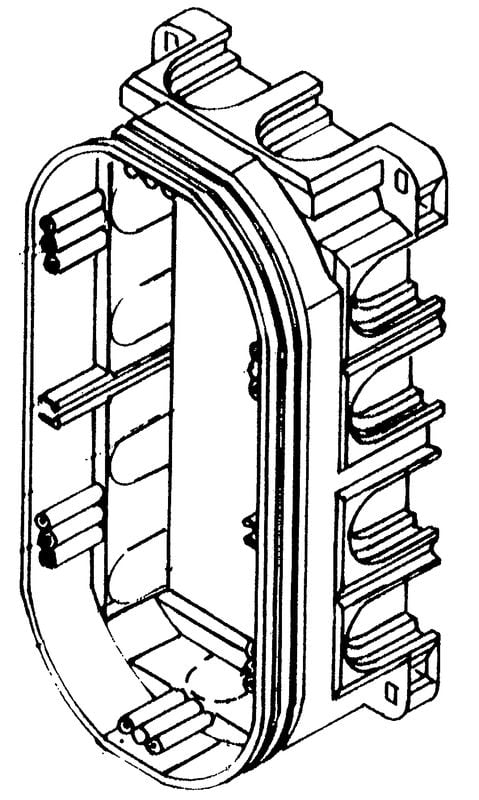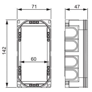 Rasiassa on 11 kpl aihioita sivuilla ja pohjassa kuusi aihiota pohjanysille. Kojerasiaan voidaan asentaa myös kolmoiskoje. Tarvittaessa kojerasia jaetaan kahteen osaan välilevyllä PMR345. Valmistettu halogeenittomasta materiaalista (IEC/61249-2-21).