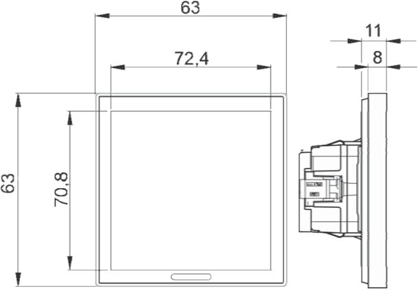Monitoiminen IPS 4\" kosketusnäyttö KNX tai free@home-järjestelmään, huoneen toimintojen visualisointiin ja ohjaamiseen. Enintään 12 toimintoa/elementtejä ja 12 sivua, enintään 4 toimintoa/sivu. Vakiotoiminnot: Painike, kytkin, himmennys, liukusäädin, tilannekutsu, verho/sälekaihdin-ohjauselementti, RGBW-ohjauselementti, huonelämpötilan säätöelementti, lämpöpumpun ohjauselementti, äänentoistonohjauselementti. Integroitu huonelämpötila-anturi, etäisyysanturi ja valoisuusanturi. 1 kpl tulo joko binääritulo tai lämpötila-anturitulo (DP4-T-1/PT1000). Näytön resoluutio 420x420. Asennus kojerasiaan. Ulkoinen apujännite: 20-32 VDC (SELV). Integroitu väyläliityntä.