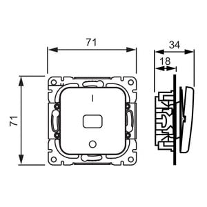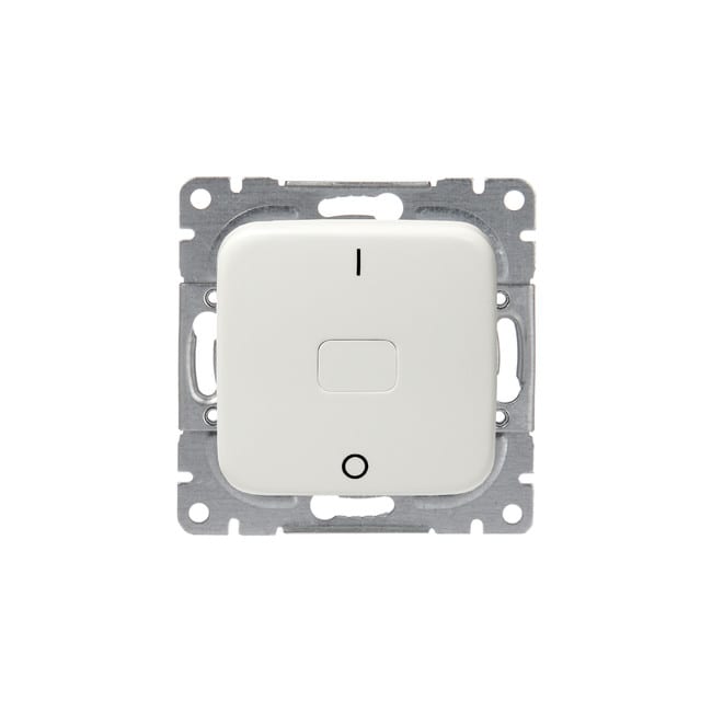Kytkin jousikiinnitteisellä vivulla ja jousiliittimin. Liittimiin voi kytkeä max 2 johdinta ja ne on hyväksytty ML ja MK johtimille. Lisäliittimiä voi käyttää johtimien jatkamiseen.