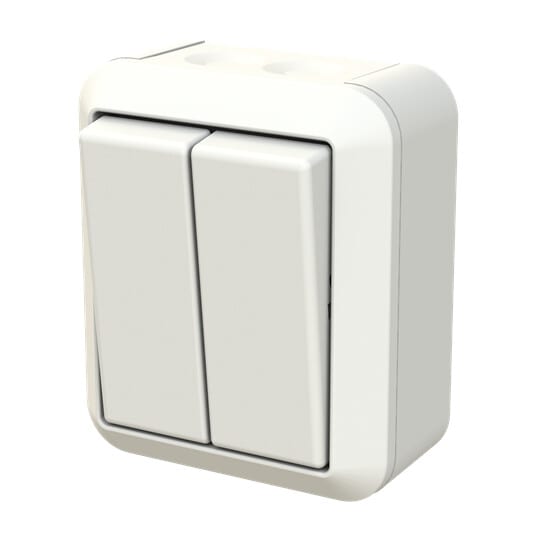 Pinta-asennettava umpikoteloitu kytkin jousiliittimin. Kytkimen rungossa on 2 lisäliitintä joita voi käyttää johtimien jatkamiseen. Liittimiin voi kytkeä max 2 johdinta ja ne on hyväksytty ML ja MK johtimille. Kotelon pohjassa on ylimääräinen potentiaalivapaa ruuviliitin johtimen jatkamiseen tai johtolajin vaihtamiseen. Ei mahdollisuutta kytkeä merkkivaloa.