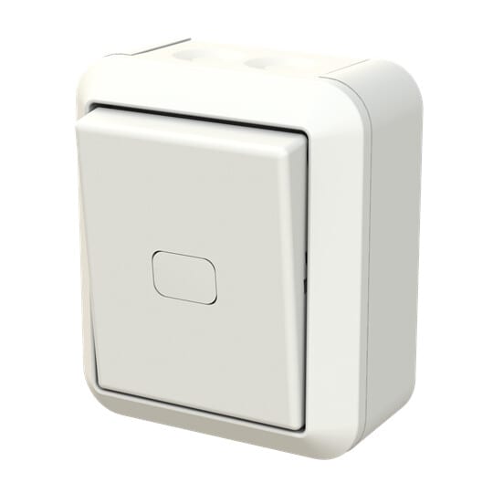 Pinta-asennettava umpikoteloitu kytkin jousiliittimin. Kytkimen rungossa on 2 lisäliitintä joita voi käyttää johtimien jatkamiseen. Liittimiin voi kytkeä max 2 johdinta ja ne on hyväksytty ML ja MK johtimille. Kotelon pohjassa on ylimääräinen potentiaalivapaa ruuviliitin johtimen jatkamiseen tai johtolajin vaihtamiseen. Merkkivalon kytkentämahdollisuus. Toimitus sisältää sekä kirkkaan että valkoisen linssin, mutta ei sisällä merkkilamppua.