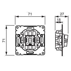 Valvontakytkin ilman vipua. Runkoon sopivat kaikki yksiosaiset vivut, mutta valvontakytkinkäytössä on käytettävä vipua 1788-xx. Kytkimessä on sekä vaihe- että nollajohtimelle oma katkaiseva koskettimensa ja lisäksi 2 lisäliitintä. Lisäliittimiä voi käyttää esim suojajohtimen jatkamiseen. Merkkivalo voidaan kytkeä haku- tai merkkivaloksi, mutta valvontakytkinkäytössä se on kytkettävä merkkivaloksi.