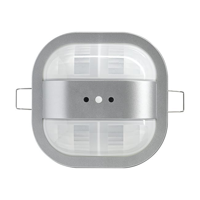 4-kanavainen käytävä läsnäolotunnistin väyläliitynnällä. Liikkeeseen ja valoisuuteen perustuva päälle kytkeminen, sammutus porrastetusti kahdella tasolla. Tunnistimessa on myös vakio-valotoiminto, huonetermostaatti ja IR-vastaanotin. Sovelluksessa on 5 lisätoimintoa sisätäen loogiset toiminnot, aikaviiveet ja porrasvaloautomaattitoiminnon. Tunnistimen koko 91x91 mm ja näkyvän osan korkeus 23 mm. Kattoasennus uppoon tai pintaan pinta-asennuskoteloa käyttäen. Uppoasennus jousikiinnityksellä, ei rasiaan. Tunnistimessa suorakaiteen muotoinen valvonta-alue ja asennettuna 2,5 m korkeuteen on tunnistuksen enimmäispituus 9 m toiseen suuntaan, eli tunnistimesta 9 m molempiin suntiin käytävänsuuntaisesti. Asennusreikä: 64-68 mm