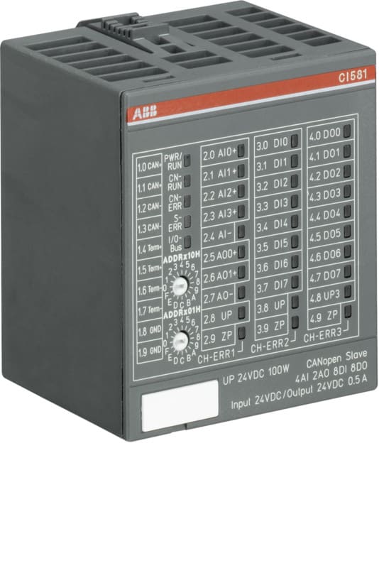 CI581-CN:S500, Väylämoduuli 4AI/2AO/8DI/8DO, CANopen, 24VDC, DI:24VDC, DO:24VDC/0.5A, U/I/RTD 12bit+sign, 1/2-kaapeli