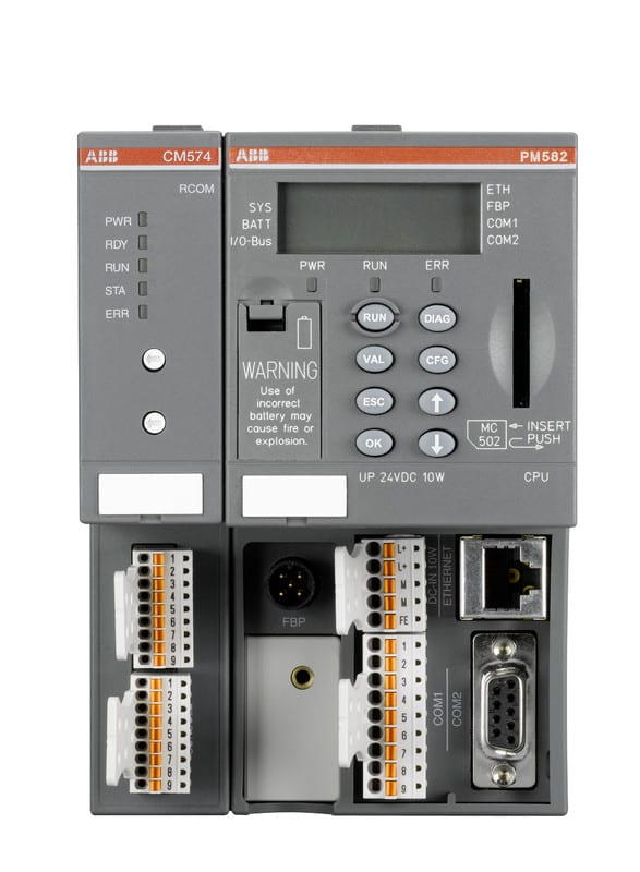 PM582:AC500 Ohjelmoitava logiikka 512kB, 24VDC,2xRS232/485,FBP,SD-Korttipaikka LCD näyttö