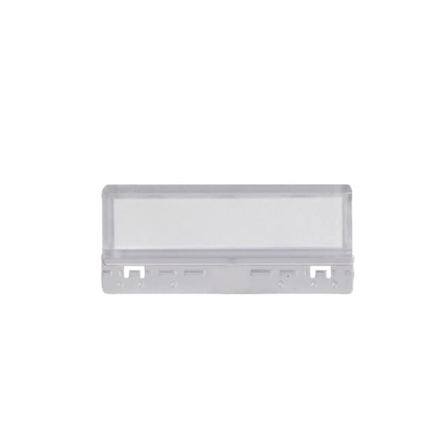 Jussi- ja Impressivo-peitelevyihin kiinnittyvä merkintäkilpi. Voidaan kiinnittää myös ruuveilla. Muovisen merkintäkilven linssin alle voi laittaa tekstitetyn liuskan 12 x 52 mm.