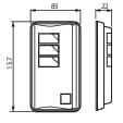 Soveltuu sellaisenaan sekä pinta- että uppoasennukseen; selkeät merkkivalot ja soittopainike. Käyttöjännite: 15-28V ac