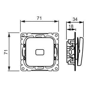 Painike jousikiinnitteisellä vivulla ja jousiliittimin. Liittimiin voi kytkeä max 2 johdinta ja ne on hyväksytty ML ja MK johtimille. Merkkivalon kytkentämahdollisuus. Painikkeessa avautuva ja sulkeutuva kosketintoiminto.
