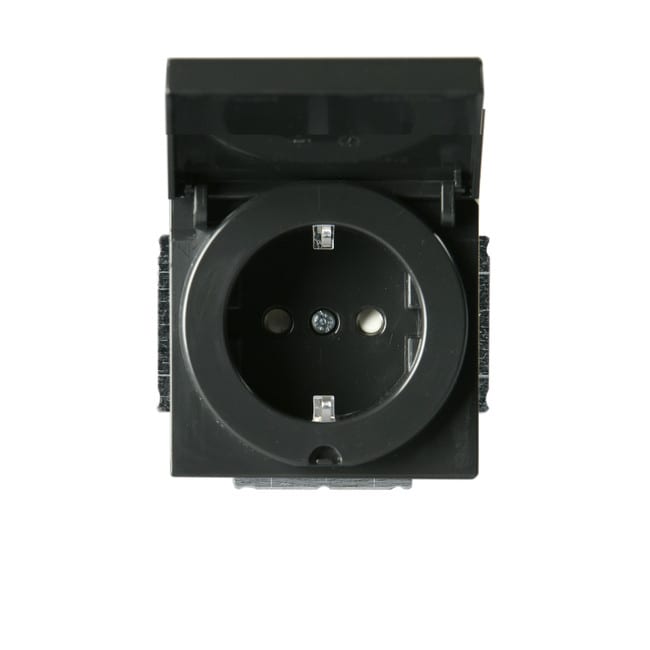 Pistorasia, Impressivo, 1-osainen, maad, jousiliittimin, antrasiitti Uppoasennettava pistorasia. Pistorasiassa on liittimet kahdelle johdolle kutakin kosketinta kohden. Ei lisäliittimiä. Liittimet on hyväksytty ML ja MK johtimille.